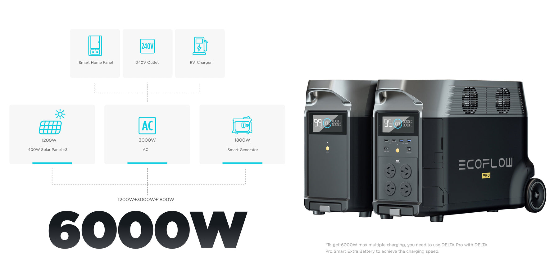 Go renewable with 1600W solar charging.